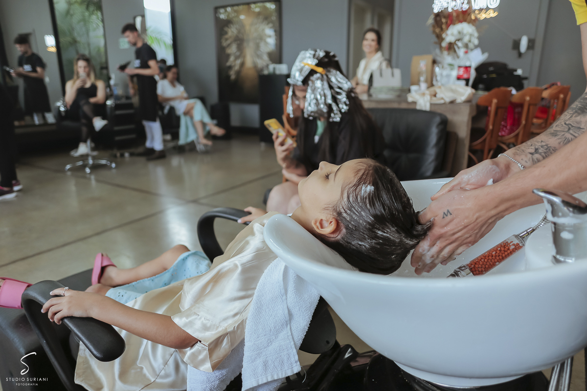 Filho do noivo se arrumando na barbearia